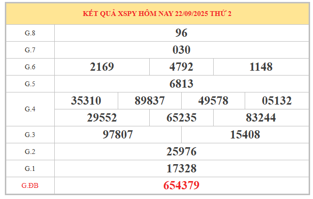 Thống kê KQXS Phú Yên ngày 29/9/2025 thứ 2 chi tiết