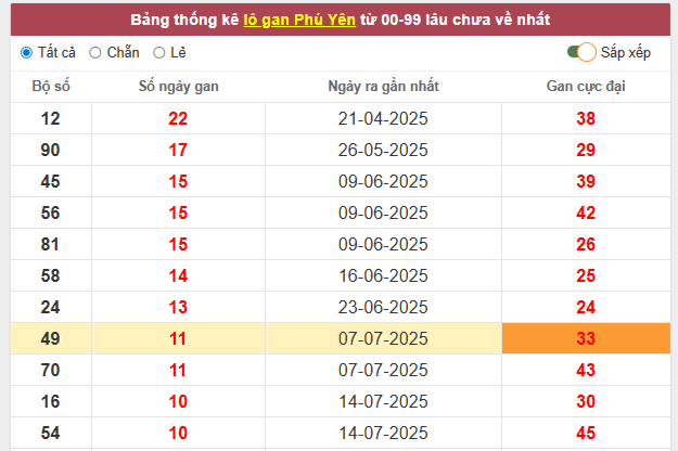 Dựa trên chu kỳ xổ số Phú Yên 30 và 90 ngày gần nhất, bảng thống kê dưới đây ghi nhận các con số nổi bật: